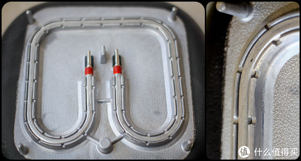 小熊这口锅真正的精华,也是它最大的卖点,其实就在锅体的下面。翻过来看看就能发现,它采用了双环铆管的工艺,将加热管直接嵌入锅体,大大的提高了加热器件的热传导效率。